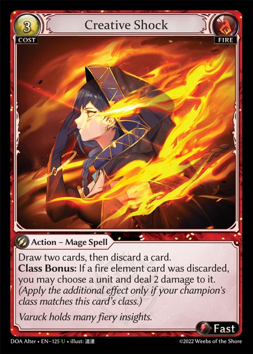 E.g., the card Creative Shock instructs the player to choose a unit and deal 2 damage to it if a Fire card is discarded during the resolution of the spell. This only has a chosen unit after the spell has resolved and can't be specified before as the card to be discarded is yet unknown.